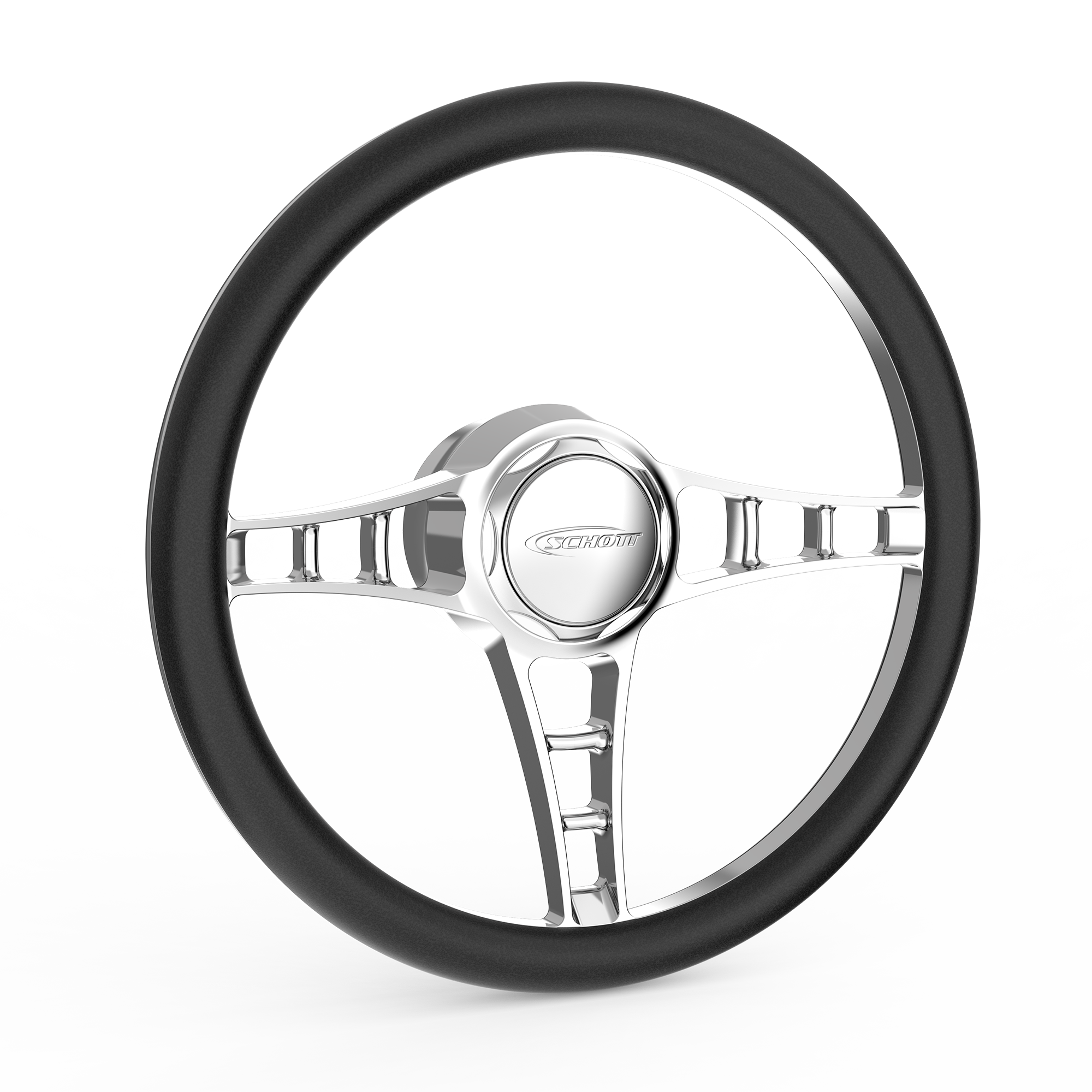 Schott Steering Wheels also include some of our signature Cover-Loc Wheel Tech in the new Horn Button Cartridge, for a clever no fastener assembly. These new Steering Wheels fit GM early columns and popular aftermarket columns.